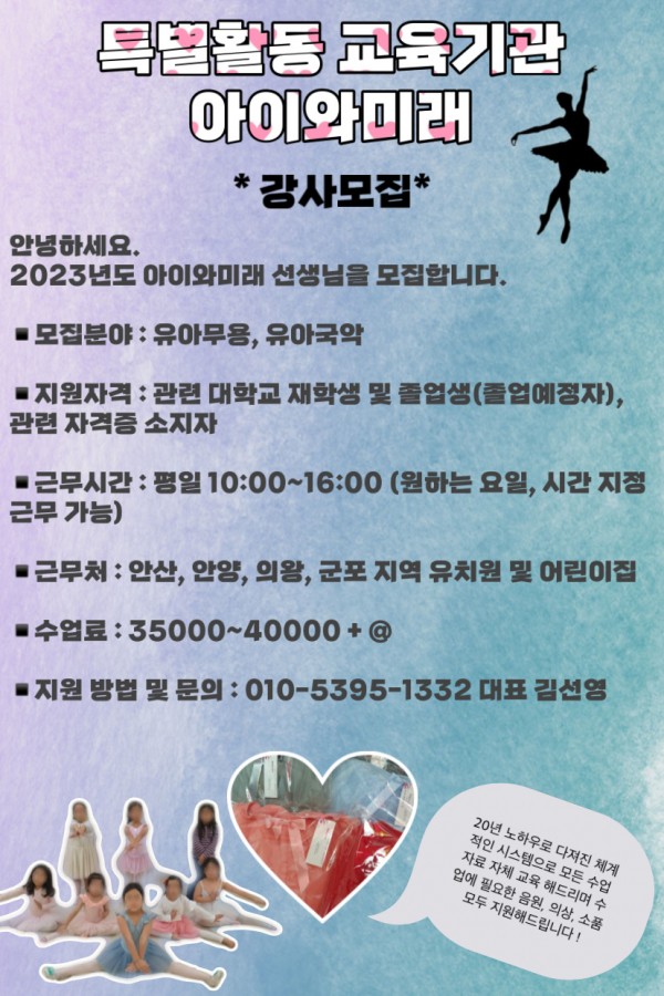 안녕하세요. 2023년도 아이와미래 유아무용선생님을 ...